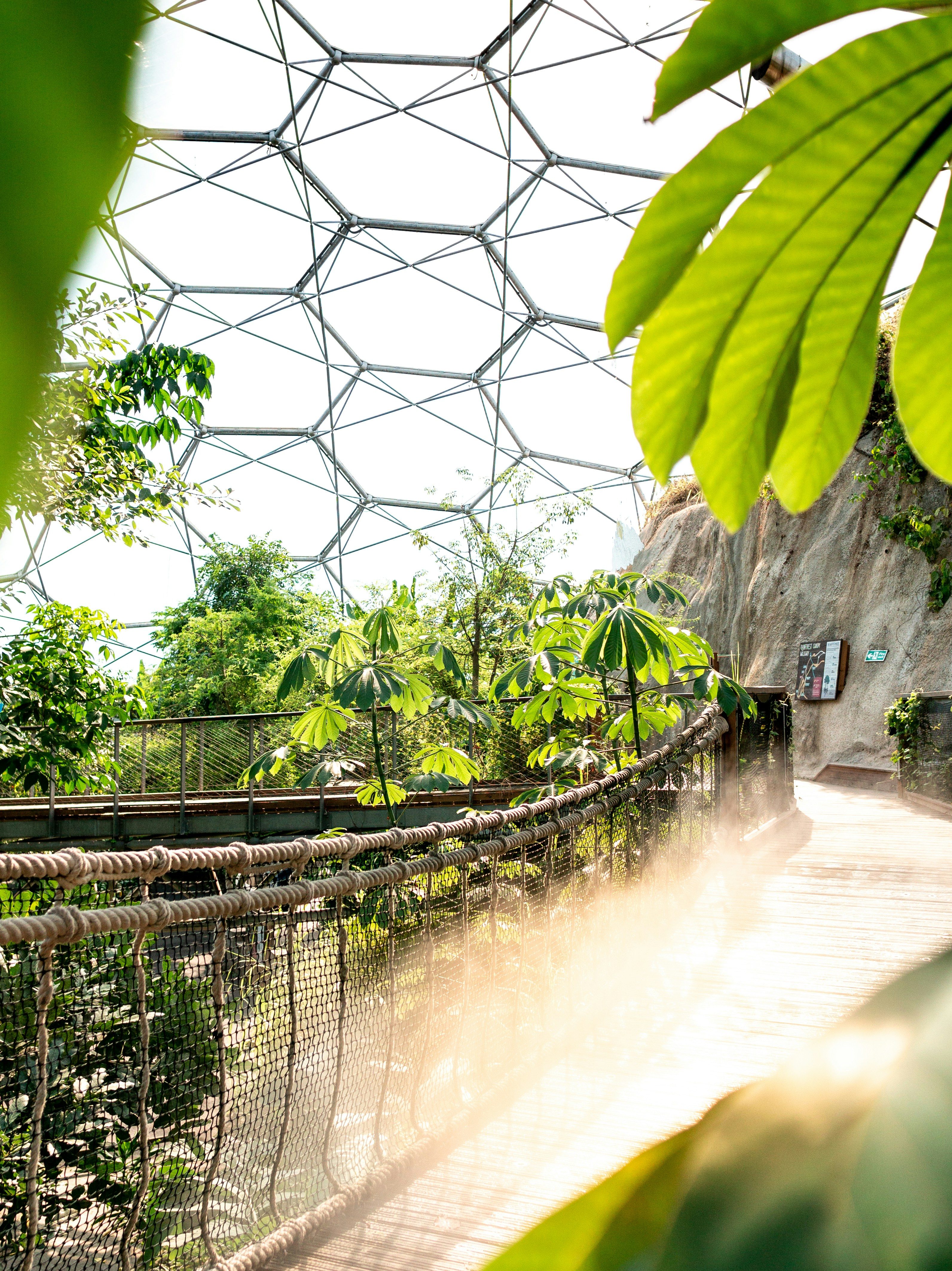 The Eden Project is highly sensory, with changes in temperature, humidity, sound, and visual input, particularly inside the biomes.